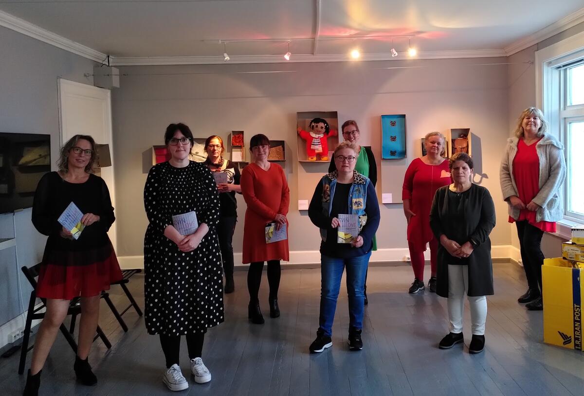 Koronavennlig åpning av From Evin with Love på Kvinnemuseet i september. Utstillingen er innlånt fra det iranske kvinnemuseet i eksil, og viser håndarbeider laget av politiske fanger i kvinnefengselet Evin utenfor Teheran. Foto: Thea Aarbakke - 2/2