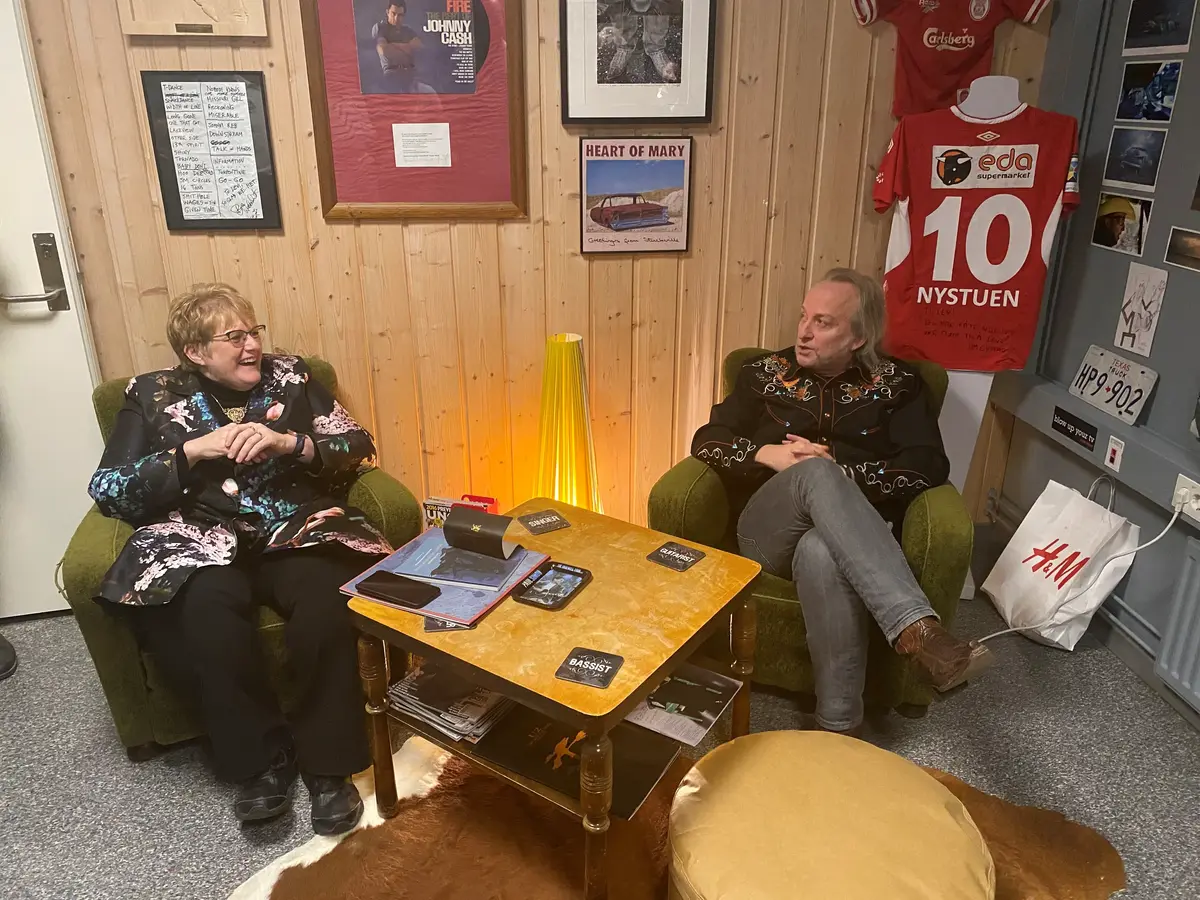 Fra åpningen av Elvis Presley Boulevard på Kongsvinger museum i januar. Skrivestua til Levi Henriksen ble åpnet av kunnskapsminister Trine Skei Grande, her i hjertelig samtale med forfatteren selv. Foto: Audun Wangen