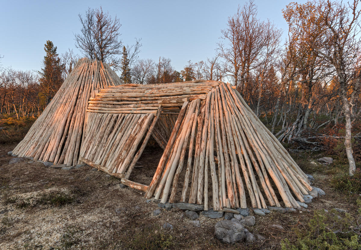 Gjenreising av samisk gamme nord for gården Kjerran på Valdalsfjellet i Engerdal. Daniel Mortenssons boplass. Bård Løken/ Anno museum