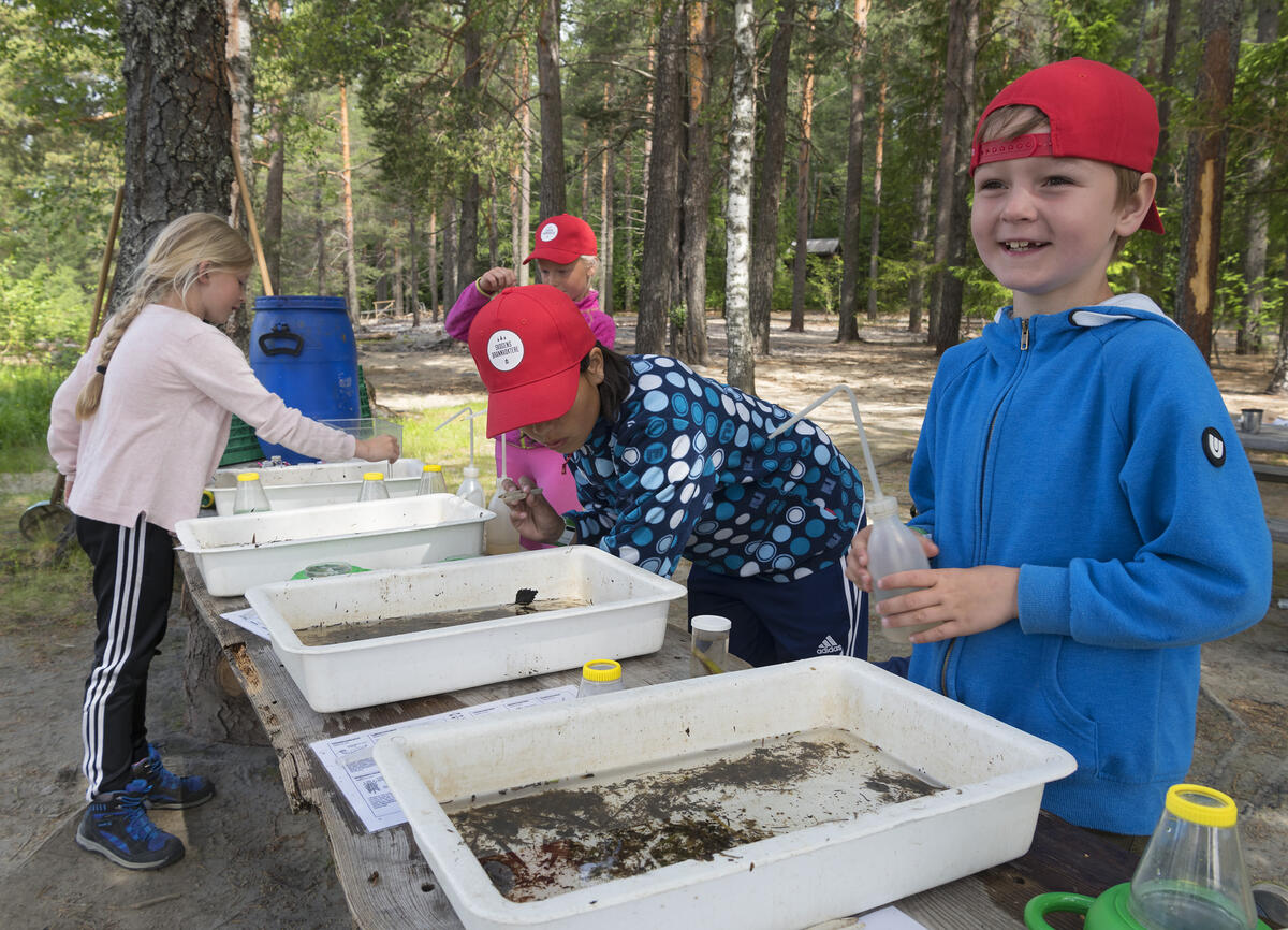 Barn som deltar på opplegg med Naturskolen ved Norsk skogmuseum.