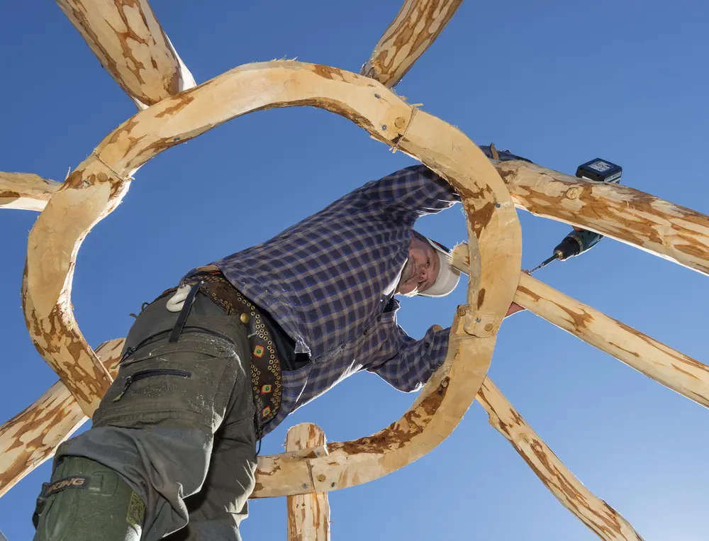 Gjenreising av samisk gamme nord for gården Kjerran på Valdalsfjellet i Engerdal. Daniel Mortenssons boplass. Bård Løken/ Anno museum