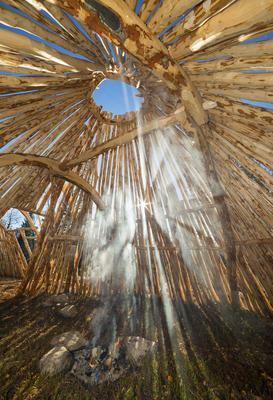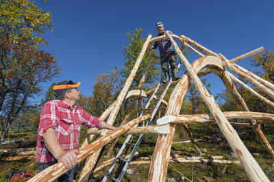 Gjenreising av samisk gamme nord for gården Kjerran på Valdalsfjellet i Engerdal. Daniel Mortenssons boplass. Bård Løken/ Norsk skogmuseum - 2/4