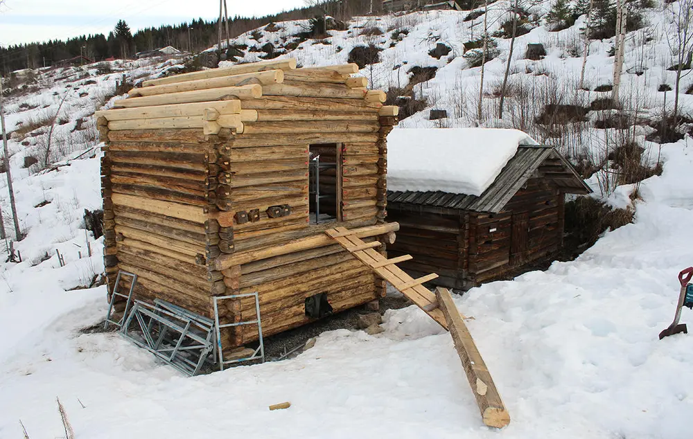 Laftet tømmervegg på Trysil bygdetun. Bård Løken/ Anno museum